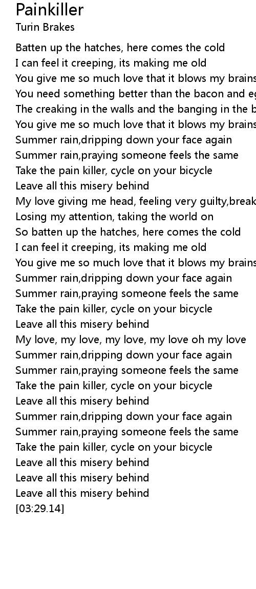 [03:04.34] Take the pain killer, cycle on your bicycle
