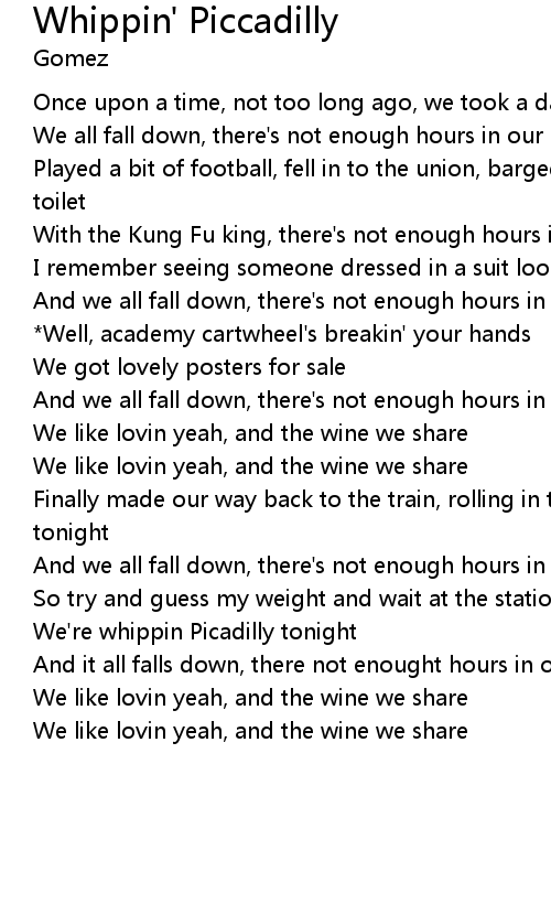We're whippin Picadilly tonight |