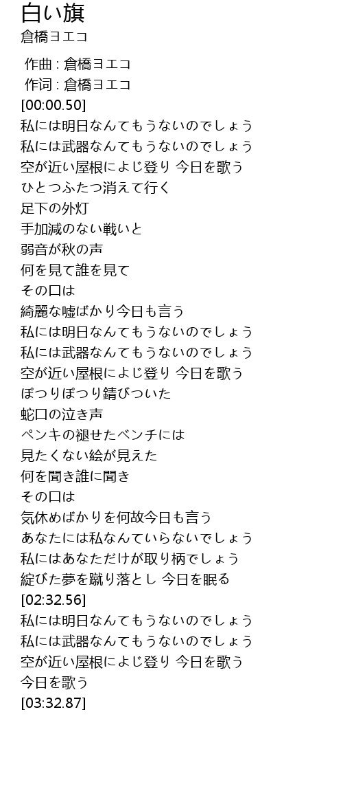 | [00:00.00] | 作曲 : 倉橋ヨエコ |