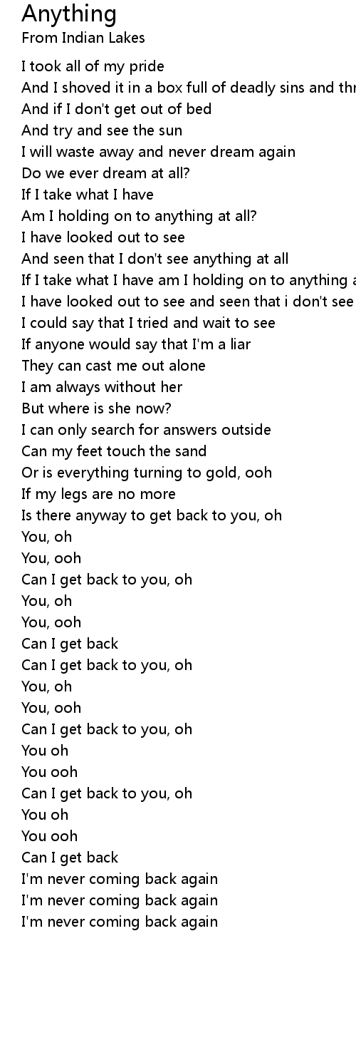 I'm never coming back again |