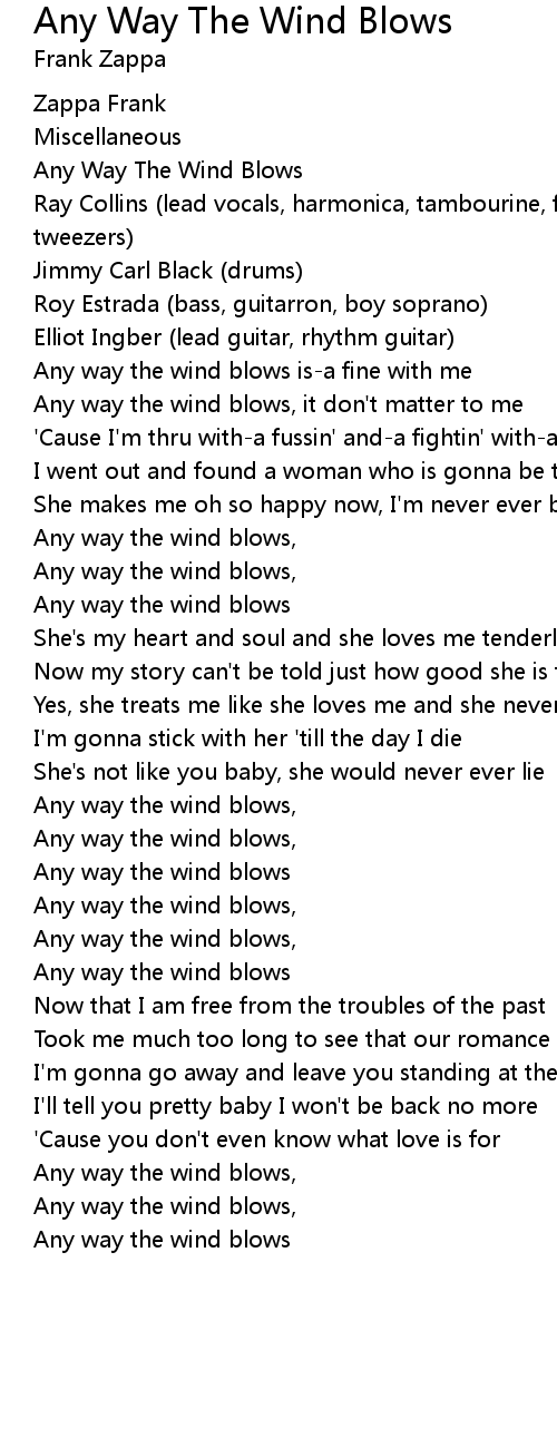 Ray Collins (lead vocals, harmonica, tambourine, finger cymbals, bobby pin, tweezers) |