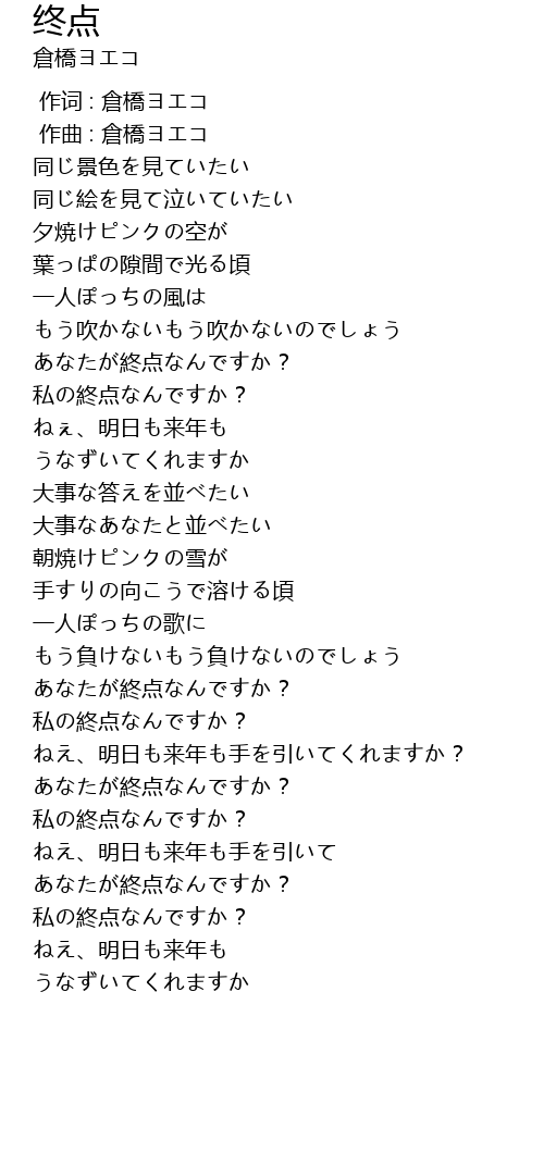 | [00:01.000] | 作曲 : 倉橋ヨエコ |