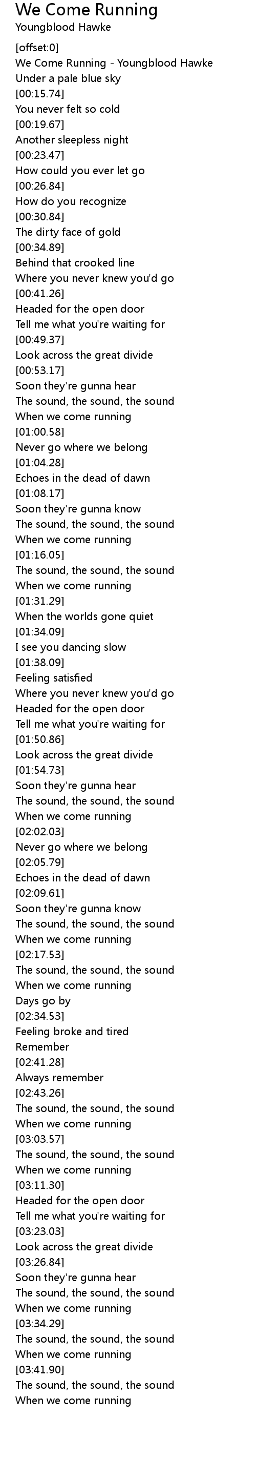 We Come Running - Youngblood Hawke |