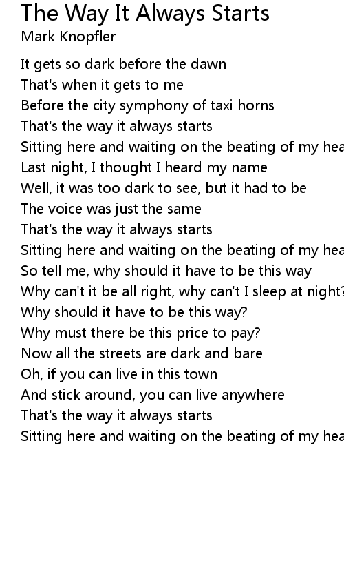 That's the way it always starts |