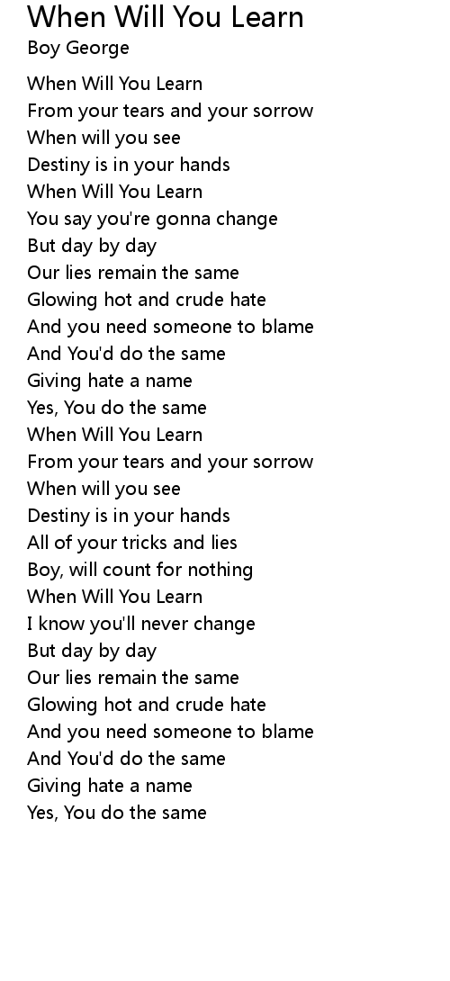 When Will You Learn |