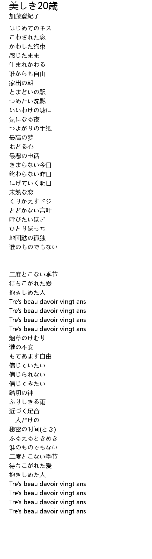 | Song | 美しき20歳 |