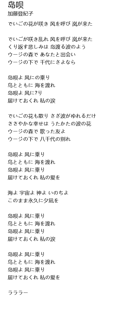 | 岛呗よ 风に乗り | |