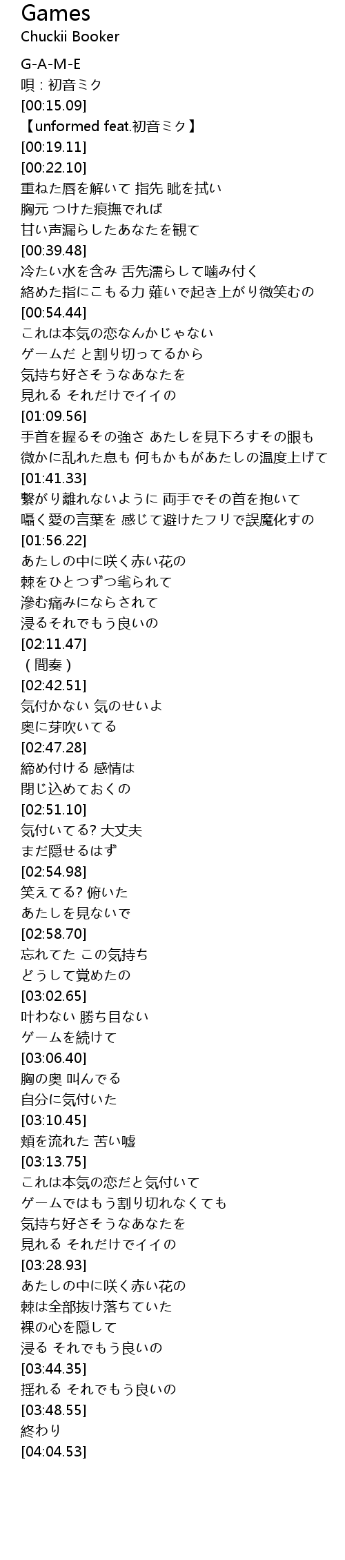 | [00:16.16] | 【unformed feat.初音ミク】 |