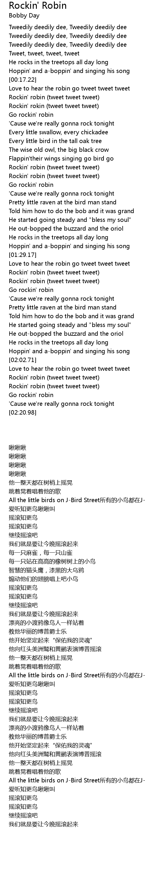 [02:11.02] Rockin' robin (tweet tweet tweet)
