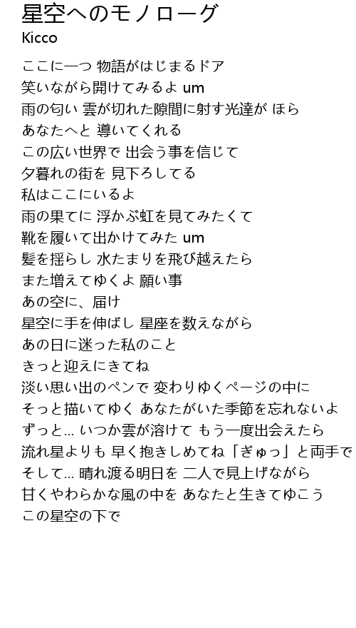 | [02:13.79] | 星空に手を伸ばし 星座を数えながら |