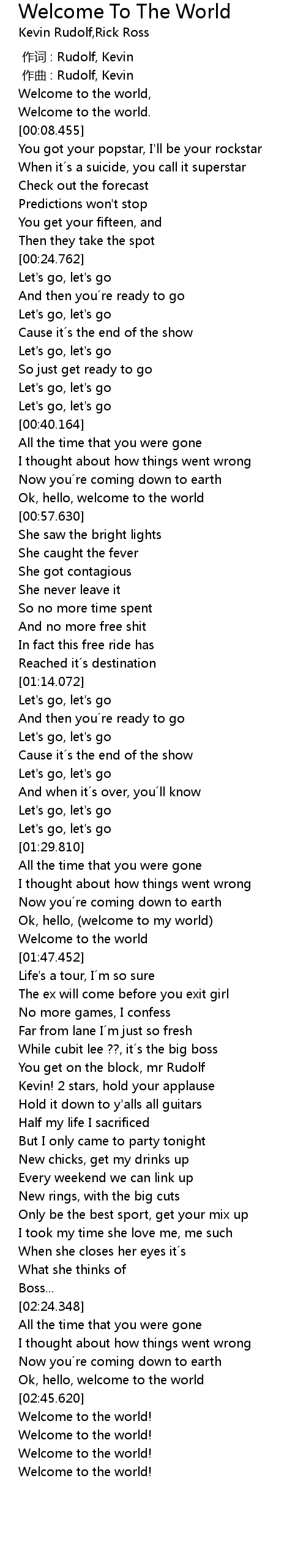| [01:46.297] | Welcome to the world |