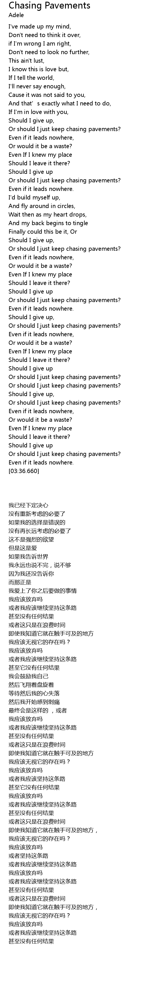 | [03:22.210] | Or should I just keep chasing pavements? |