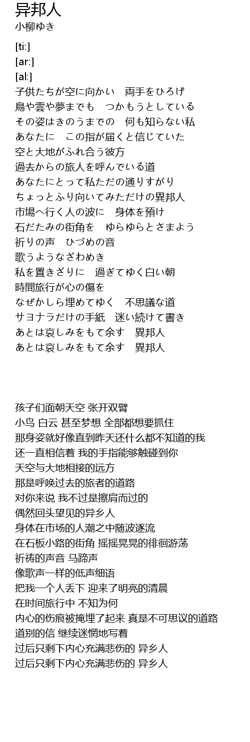 | [03:24.95] | あとは哀しみをもて余す 異邦人 |