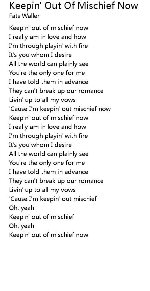 'Cause I'm keepin' out mischief now |