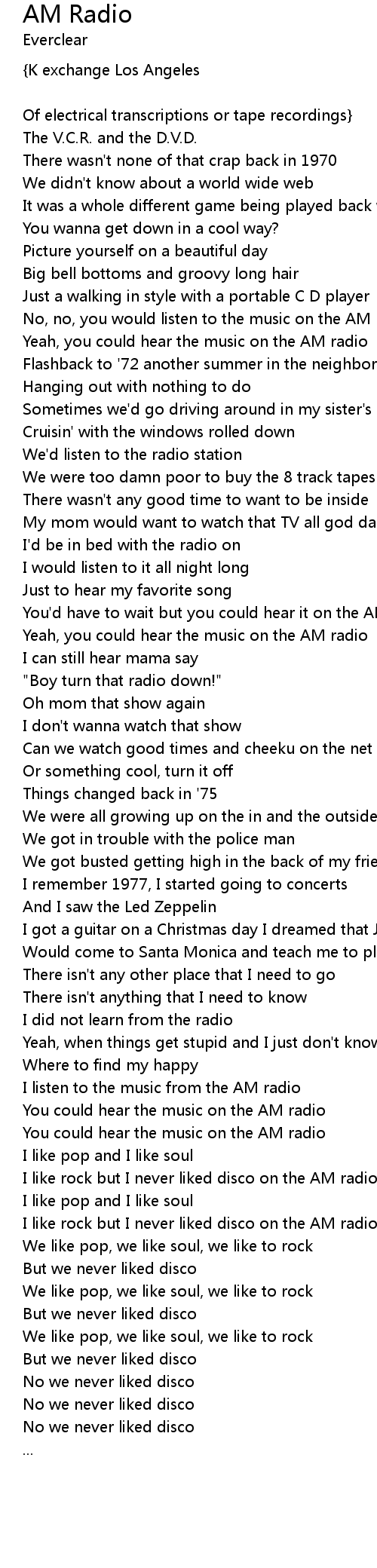 I like rock but I never liked disco on the AM radio |