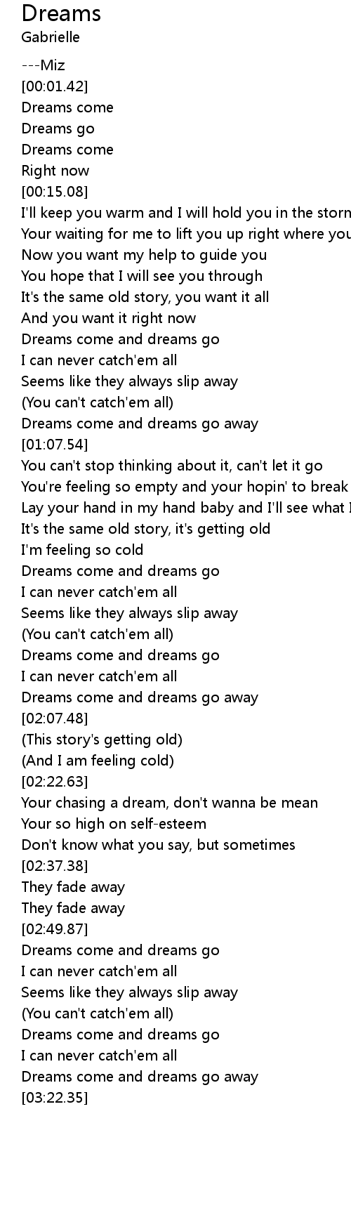 Dreams come and dreams go away |