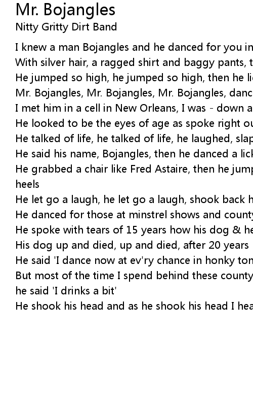 Mr. Bojangles, Mr. Bojangles, Mr. Bojangles, dance! |
