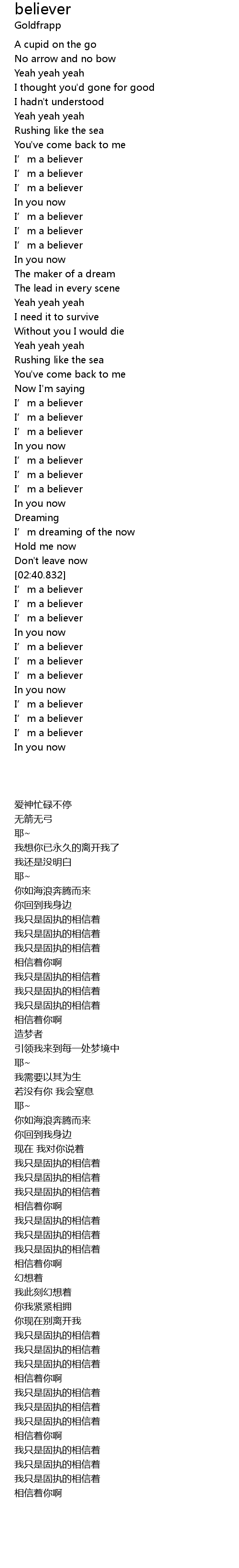 | [02:00.747] | I’m a believer |
