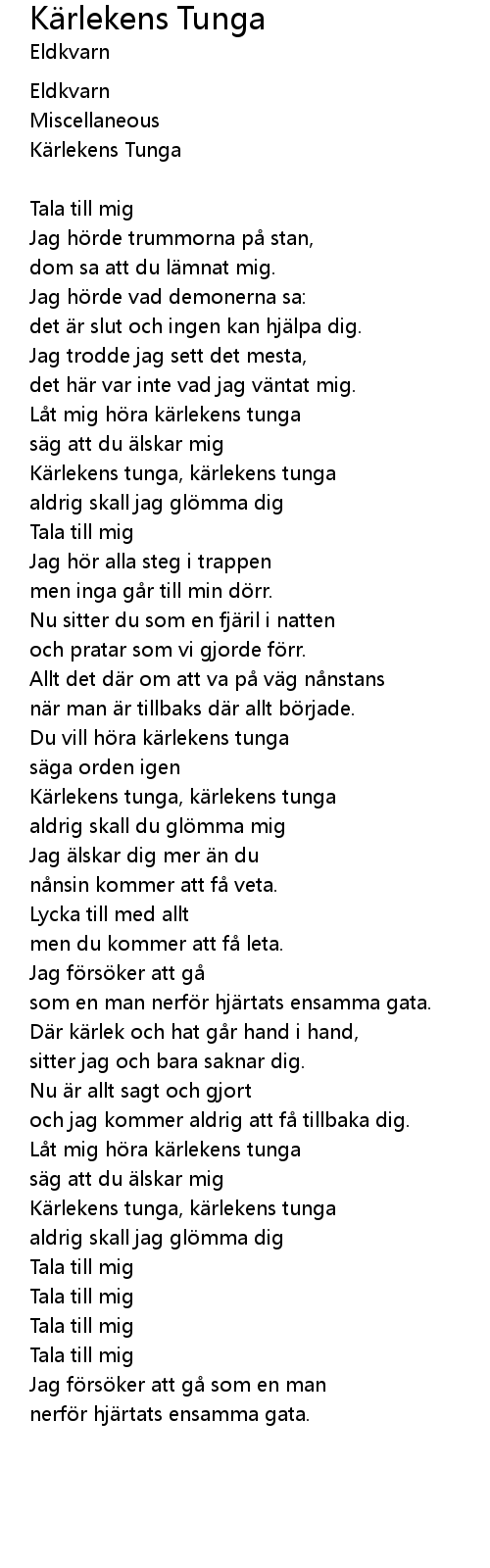 | Du vill h ra k rlekens tunga | |