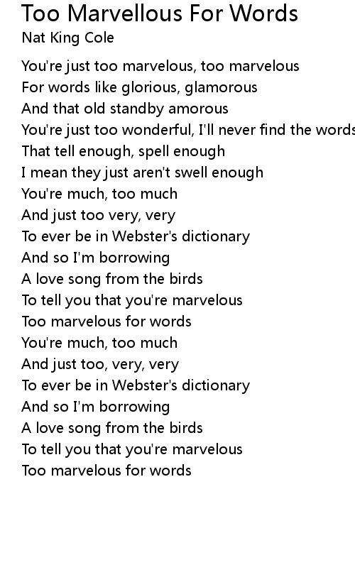 Too marvelous for words |