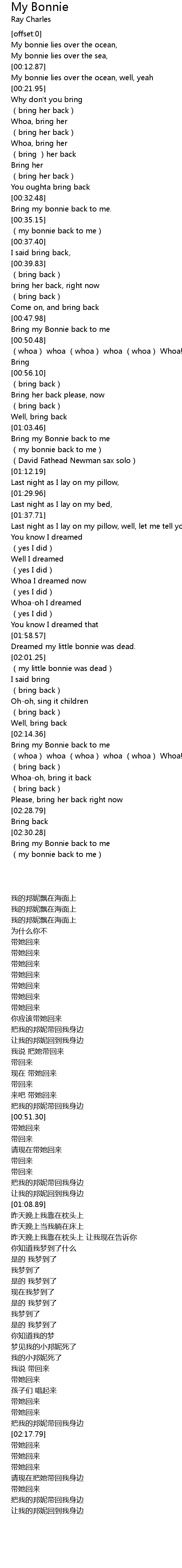 | [02:31.28] | Bring my Bonnie back to me |