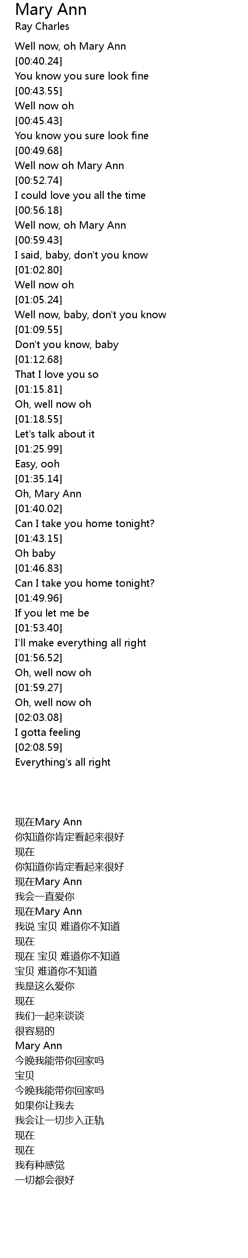 Well now, oh Mary Ann |