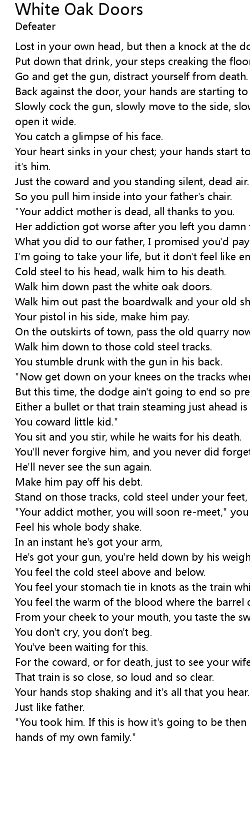 "Your addict mother, you will soon re-meet," you whisper in his ear, |