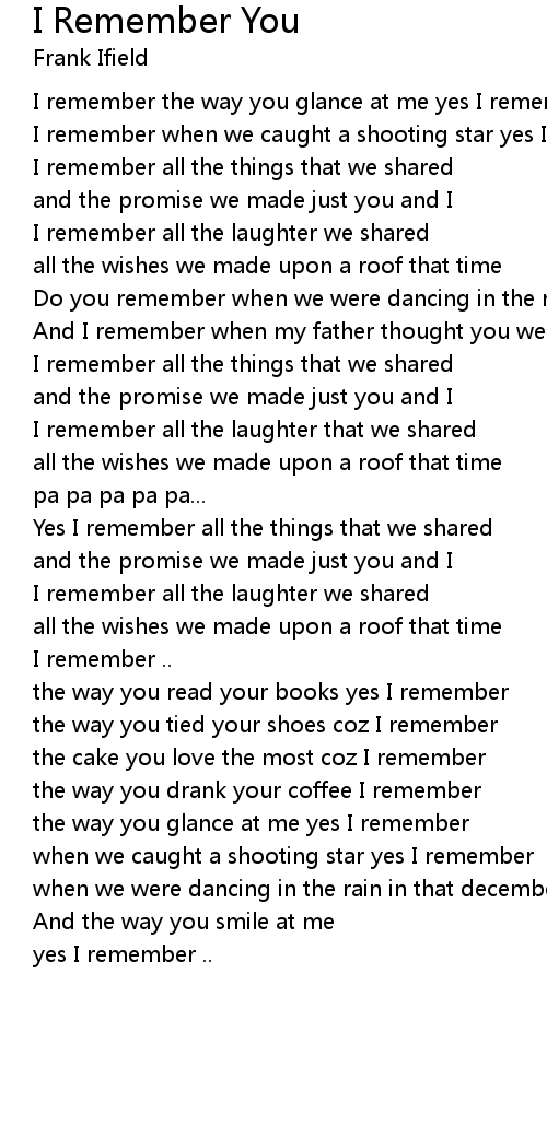 Yes I remember all the things that we shared |