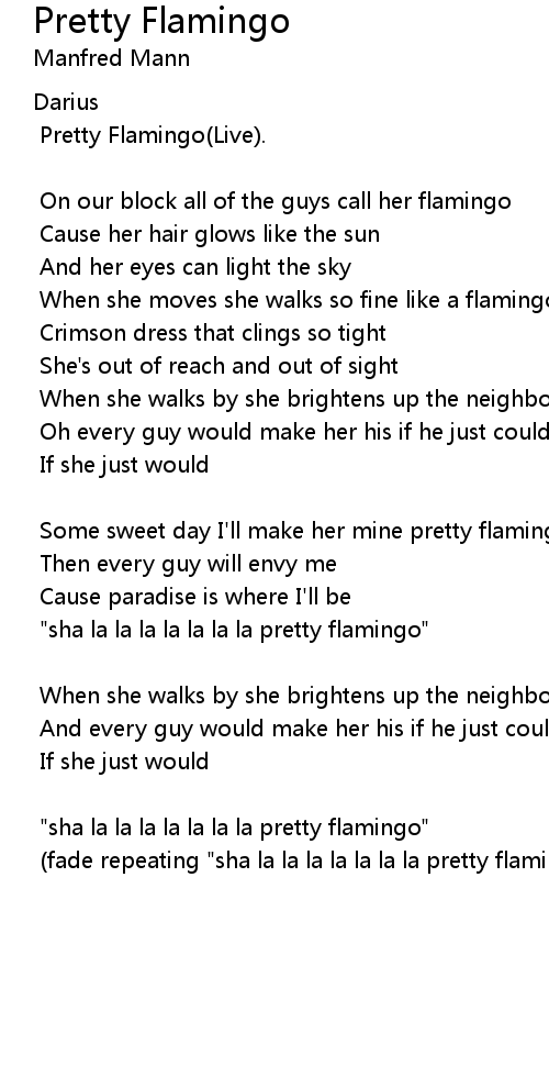 (fade repeating "sha la la la la la la la pretty flamingo") |