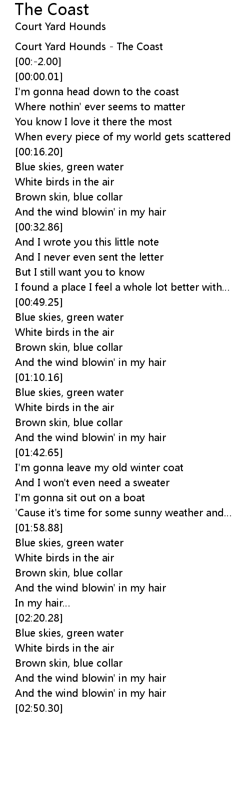 | [00:00.64] | I'm gonna head down to the coast |