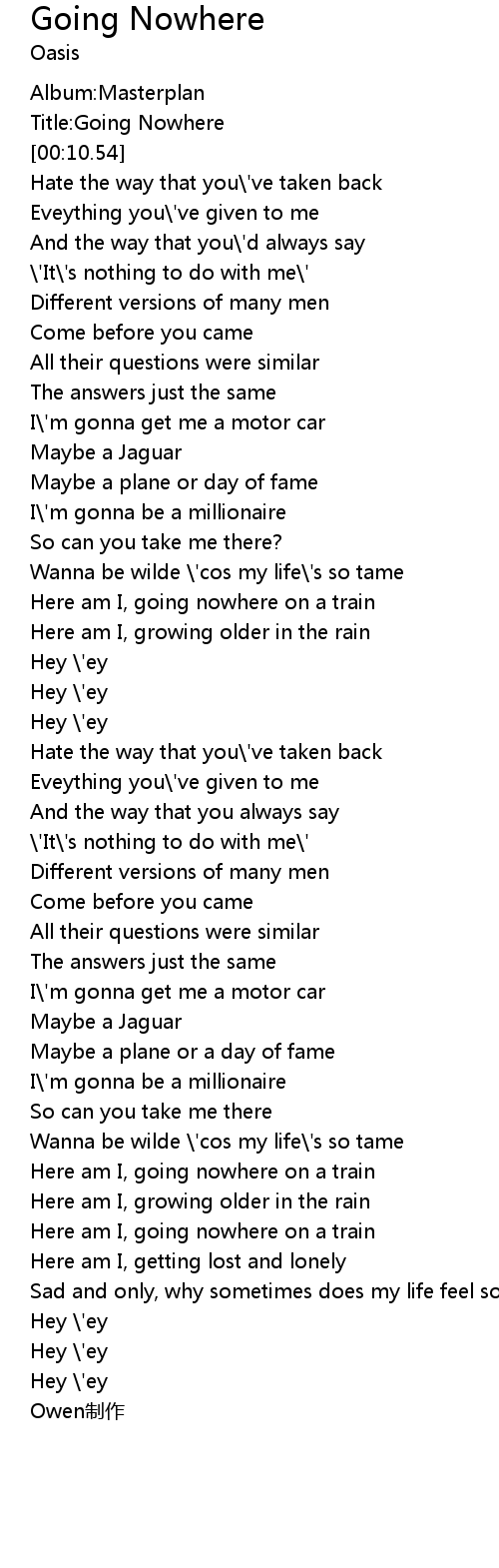 | [00:07.82] | Title:Going Nowhere |