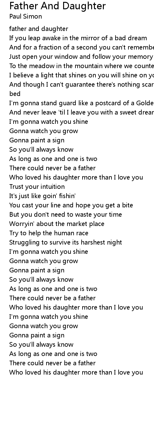 Who loved his daughter more than I love you |