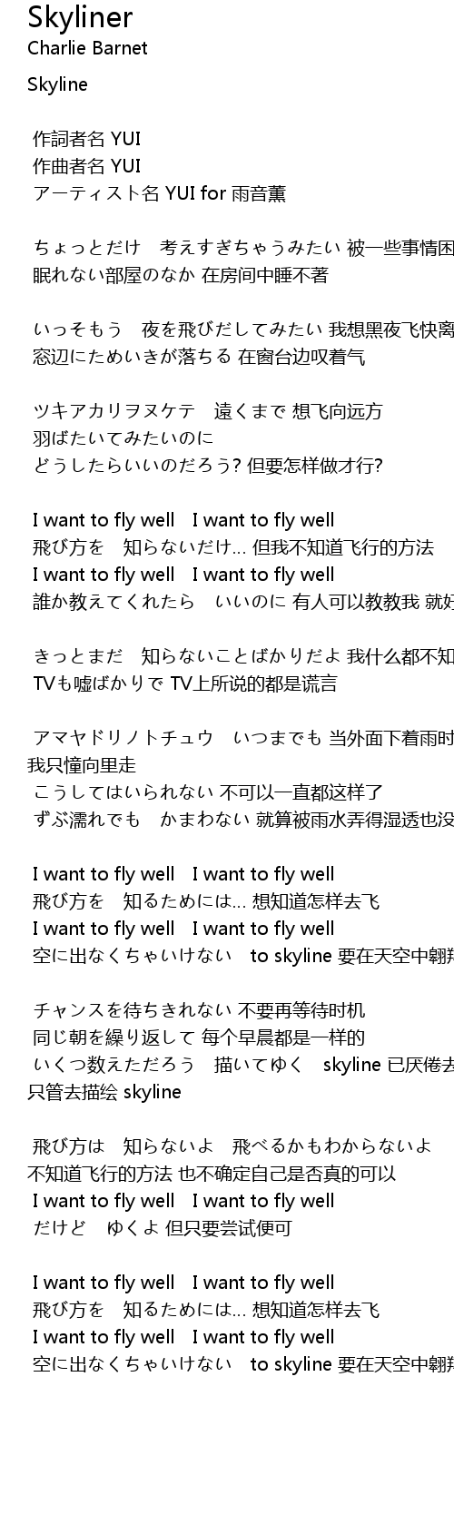 | 空に出なくちゃいけない to skyline 要在天空中翱翔 to skyline | |