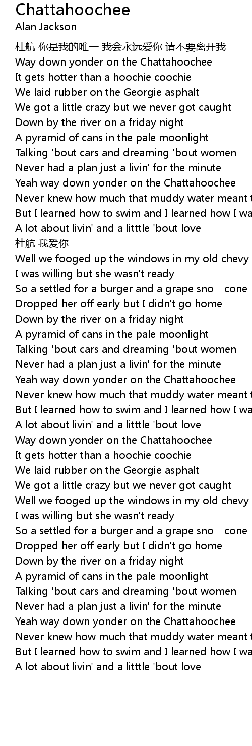 | [00:49.31] | Yeah way down yonder on the Chattahoochee |