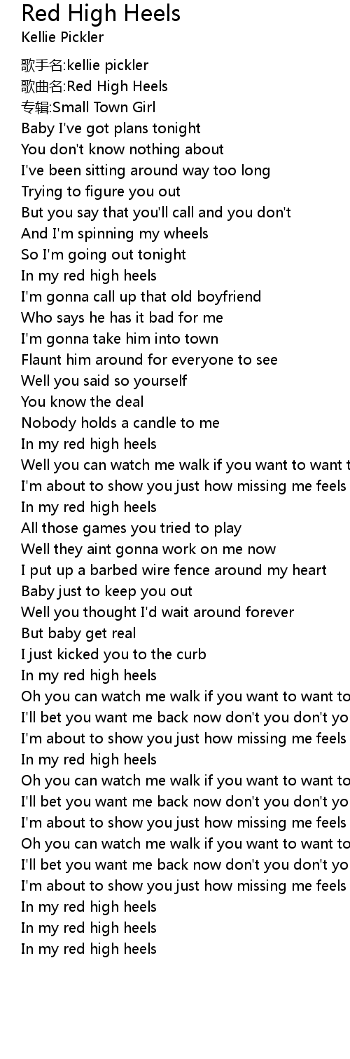 | [00:03.891] | gē qǔ míng: Red High Heels |
