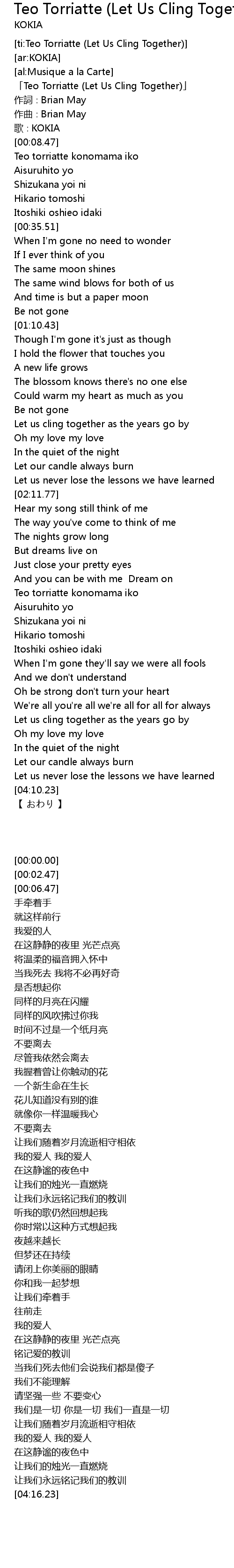 | [00:00.00] | Teo Torriatte Let Us Cling Together |