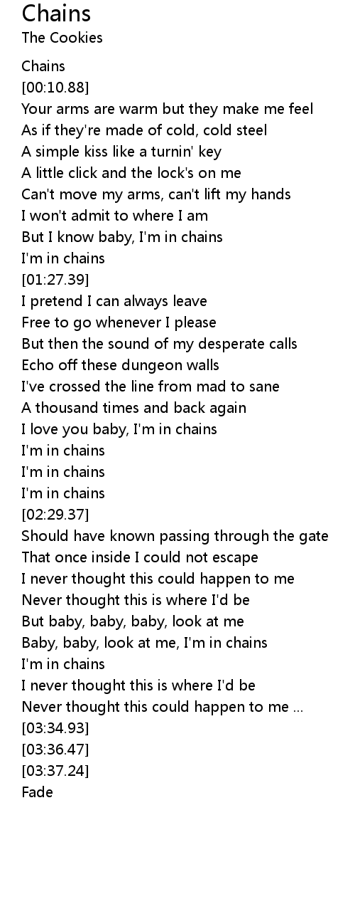 [03:05.57] Baby, baby, look at me, I'm in chains