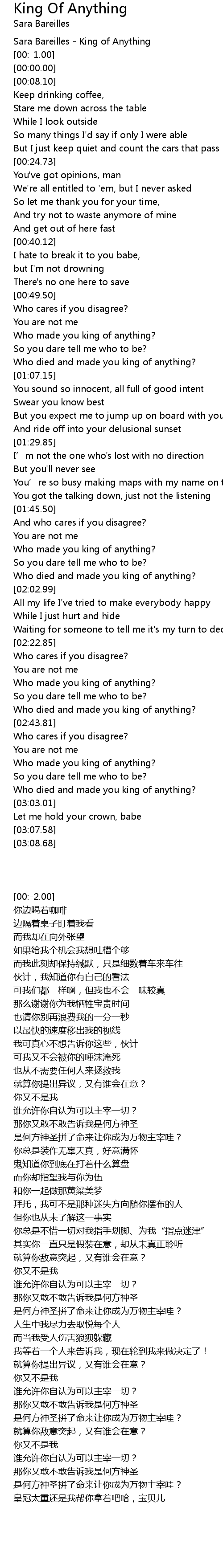 | [00:-2.00] | Sara Bareilles King of Anything |