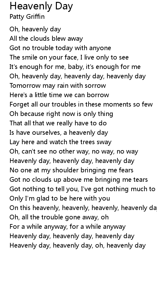 Heavenly day, heavenly day, oh, heavenly day |