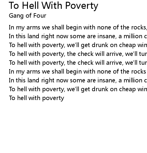 To hell with poverty, the check will arrive, we'll turn to boast again |