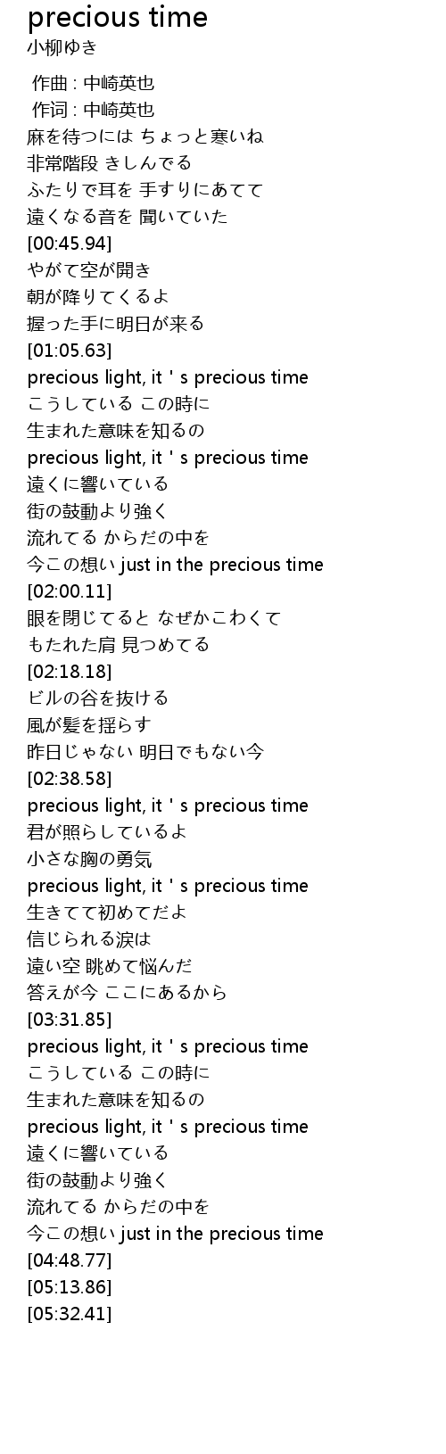 | [02:40.18] | precious light, it s precious time |