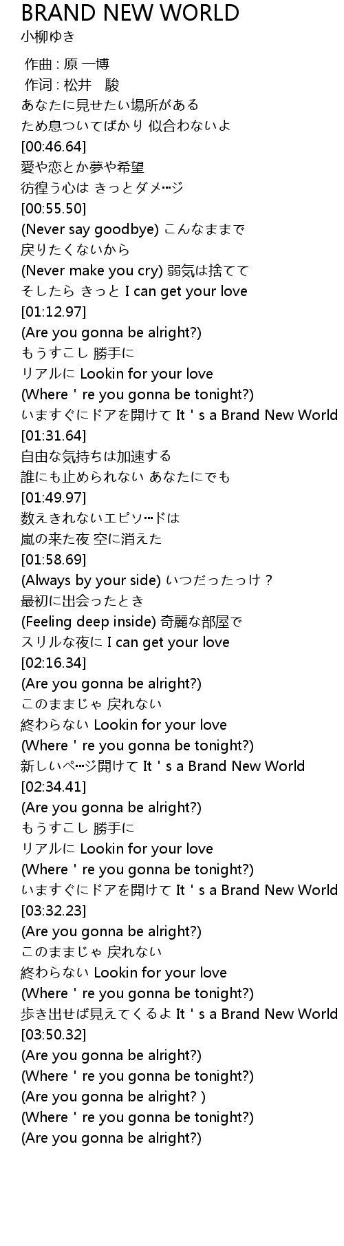 | [03:44.11] | 歩き出せば見えてくるよ It's a Brand New World |