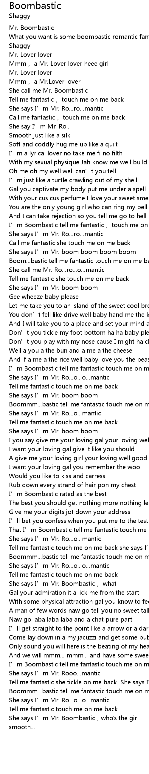 | [01:56.76] | I' m Boombastic tell me fantastic touch me on me back |