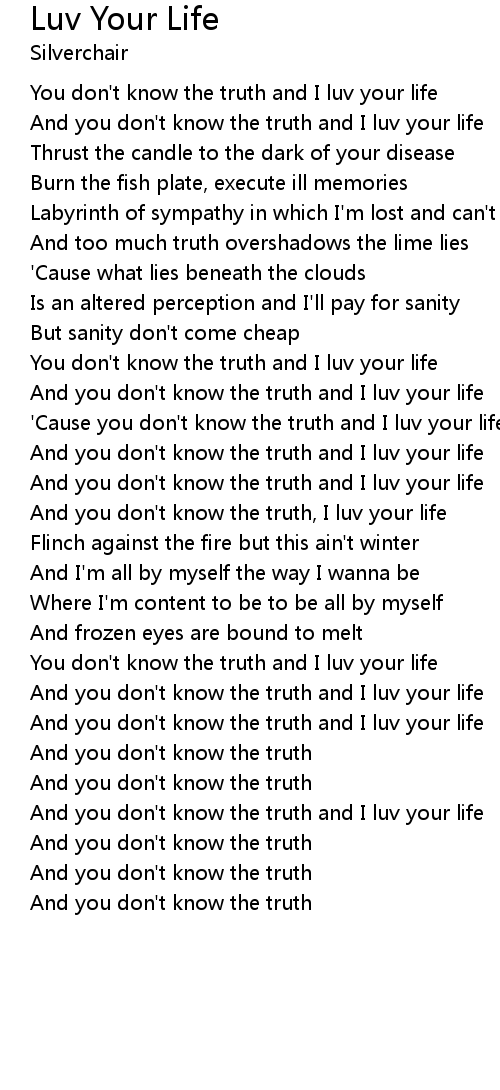 And you don't know the truth and I luv your life |