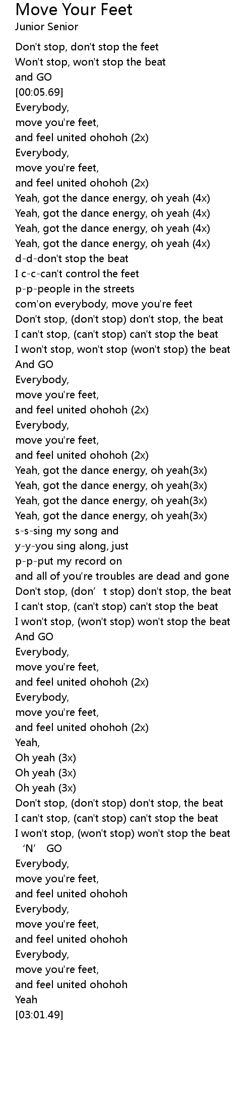 | [00:00.45] | Don't stop, don't stop the feet |