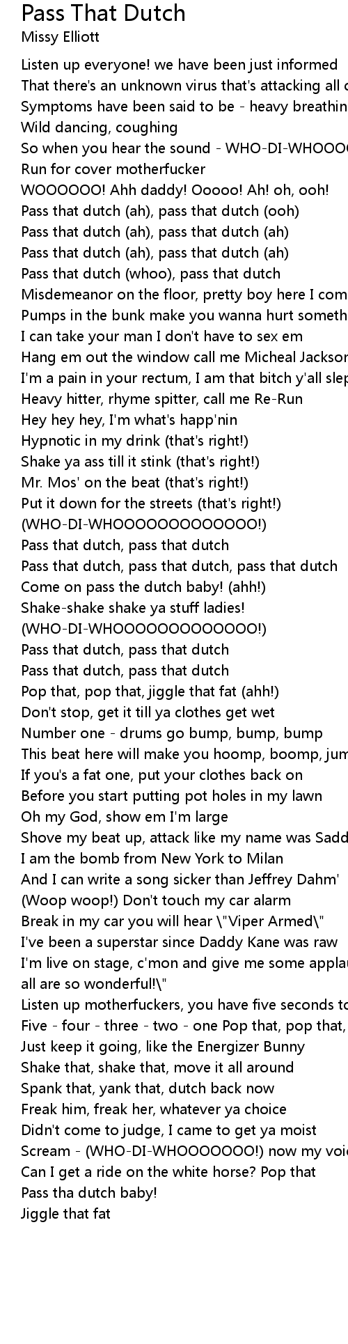 Pass that dutch, pass that dutch, pass that dutch |