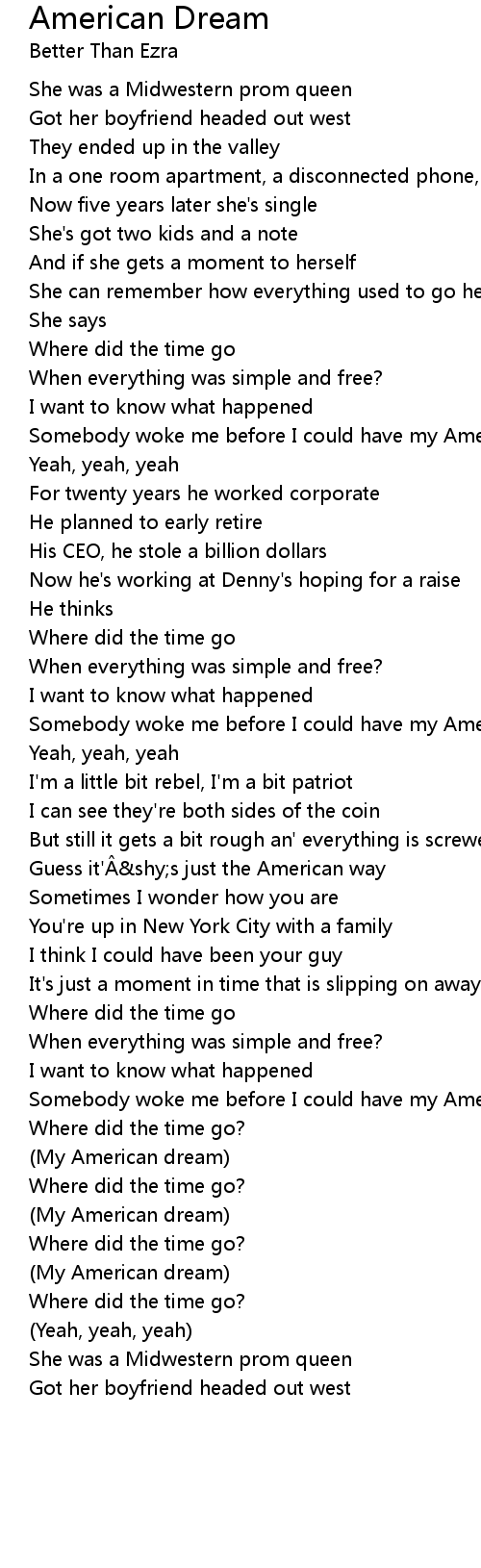 | Somebody woke me before I could have my American dream | |