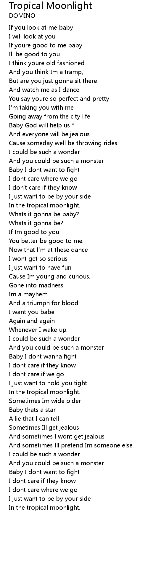 In the tropical moonlight. |
