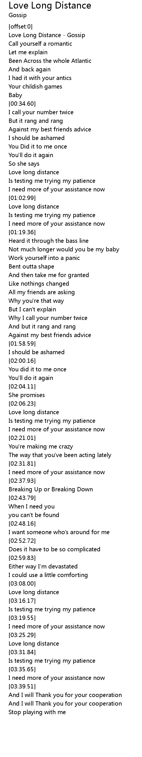 Love Long Distance - Gossip |