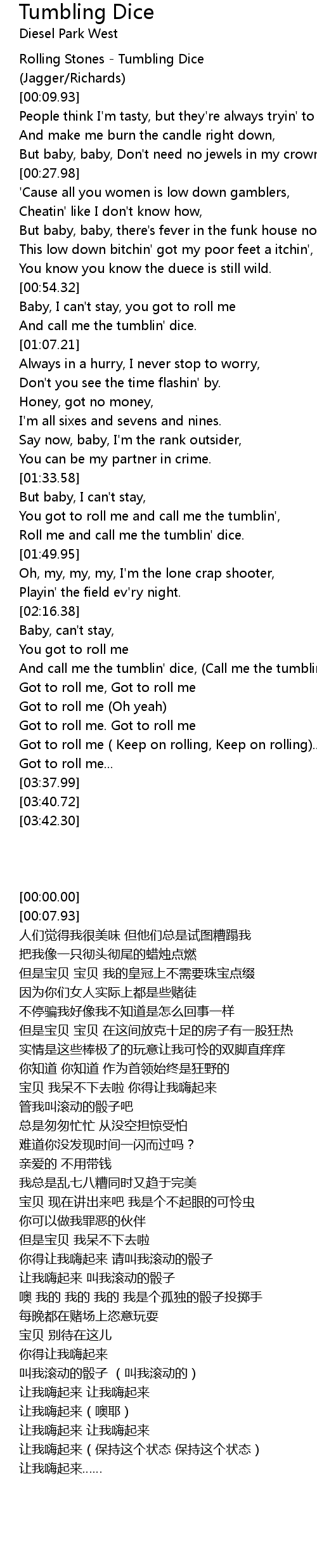 And call me the tumblin' dice, (Call me the tumblin') |